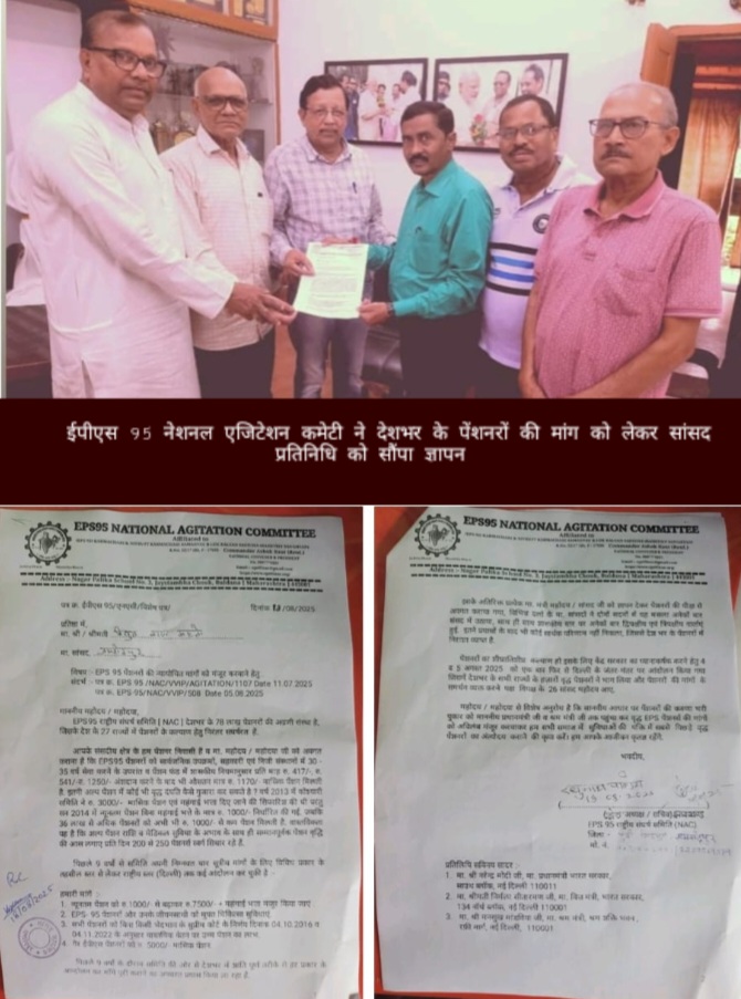 इसके अलावा पेंशनरों की मांग है कि सभी पेंशनरों और उनके जीवनसाथी को मुफ्त चिकिसकीय सुविधा, सभी पेंशनरों को बिना किसी भेदभाव के सुप्रीम कोर्ट के निर्णय अनुसार दिनांक 4 अक्टूबर 2016 से 4 नवंबर 2022 तक वास्तविक वेतन पर उच्च पेंशन का लाभ दिया जाय एवं गैर ईपीएस 95 पेंशनर्स को पेंशन की राशि 5000 निर्धारित किया जाय. इन 4 सूत्री मांगों का ज्ञापन सांसद महोदय को देश के प्रधानमंत्री, वित्तमंत्री और श्रम मंत्री को सौंपा गया है. बता दें कि इस संगठन के प्रदेश अध्यक्ष पूर्व टाटा वर्कर्स यूनियन के अध्यक्ष रघुनाथ पांडेय हैं.