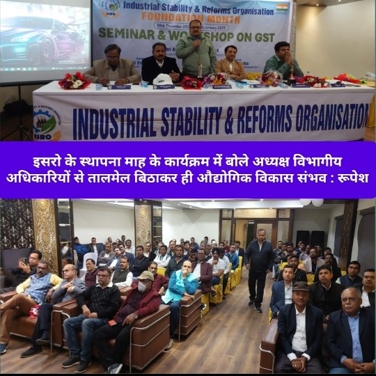 कार्यक्रम में मौजूद इसरो के अध्यक्ष रूपेश कतारियार ने कहा कि आयोजित सेमिनार में उद्यमियों ने अपनी बढ़-चढ़कर सहभागिता दिखाई है. जिससे साबित होता है कि इसरो संगठन छोटे उद्योगों के हित में है. उन्होंने कहा कि इसरो उद्योग विभाग से संबंधित विभाग और अधिकारियों के साथ आपसी तालमेल बिठाकर औद्योगिक क्षेत्र में विकास के गति को आगे बढ़ाएगी. आगे भी इस प्रकार के सेमिनार आयोजित होते रहेंगे. सेमिनार में अध्यक्ष के अलावा संरक्षक हंसराज जैन, महासचिव संदीप मिश्रा, सचिव सह टैक्स कंसलटेंट पंकज झा, महासचिव समीर सिंह, कोषाध्यक्ष उत्तम चौधरी आदि पदाधिकारी समेत करीब 100 उद्यमी मौजूद थे।