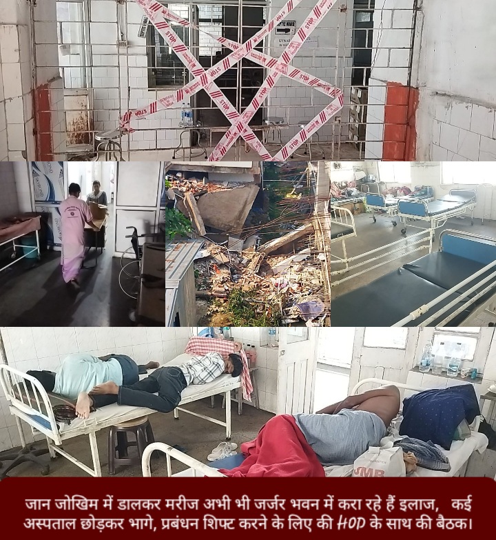यहां से भाग जाने में ही भलाई है।वैसे घटना स्थल के दोनों तल्ले को सील कर दिया है और कुछ मरीजों को PG भवन में शिफ्ट किया गया है।इस बारे में अस्पताल अधीक्षक डॉ R.K.मंधान ने बताया कि मंत्री के द्वारा दिए गए निर्देश पर सभी विभाग के HOD के साथ बैठक की जा रही है जिसके बाद दो दिन के अंदर सभी मरीजों को PG भवन में सभी सुविधाओं के साथ शिफ्ट कर ली जाएगी।बता दे कि मंत्री फुरकान अंसारी ने बीती रात घटना स्थल पर पहुंचकर स्तिथि की जानकारी ली और निर्देश दी कि 15 दिनों में उस जर्जर भवन को ध्वस्त कर दिया जाय। जिसे लेकर जिला प्रशाशन और अस्पताल प्रबंधन अलर्ट मोड पर है।