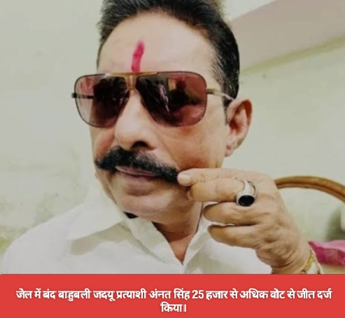 पटना : उपलब्ध जानकारी के अनुसार, जेल में बंद बाहुबली जदयू प्रत्याशी अनंत सिंह ने चुनाव में प्रभावशाली प्रदर्शन करते हुए 25 हजार से अधिक वोटों से जीत दर्ज की है। उनकी जीत ने राजनीतिक हलकों में कई तरह की चर्चा को जन्म दिया है, क्योंकि वे लंबे समय से विवादों और कानूनी मामलों के कारण सुर्खियों में रहे हैं।