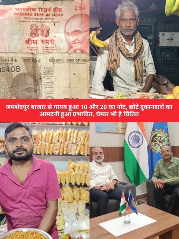 जमशेदपुर: जमशेदपुर में इन दिनों खुचरे का घोर किल्ल्त होने लगी है जिसे लेकर व्यवसाईयों को काफी समस्या का सामना करना पड़ रहा है वही चेंबर ऑफ कॉमर्स भी इसे लेकर काफी चिंतित है और इसे दूर करने के लिए लगातार प्रयासरत है. यह समस्या विगत तीन महीने से निरंतर चली आ रही है लेकिन पिछले दो सप्ताह से 10 और 20 रुपए की घोर किल्ल्त उत्पन्न हो गई है, जिसकी वजह से छोटे दुकानदारों को विभिन्न समस्याओं के साथ दुकानदारी भी प्रभावित हो रही है इसे लेकर फल दुकानदार राम का कहना है कि शुरुआत में किसी तरह से चेंज जुगाड़ कर समस्या का निदान करने का प्रयास करते थे लेकिन अब ऐसा लग रहा है कि 10 और 20 का नोट और सिक्का शहर से गायब भी हो गया है जिसके कारण चेंज नहीं देने की वजह से ग्राहक सामान खरीद कर लौटा दे रहे हैं जिससे उन्हें काफी नुकसान उठाना पड़ रहा है.
