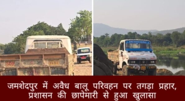 जमशेदपुर : जमशेदपुर में उपायुक्त अनन्य मित्तल के आदेश पर सिदगोड़ा थाना क्षेत्र के बागुनहातु बिहारी घाट में स्वर्णरेखा नदी किनारे औचक जांच अभियान चलाया गया। इस कार्रवाई का नेतृत्व खनन टास्क फोर्स ने किया, जिसमें तीन 407 वाहन अवैध बालू से लदे हुए पकड़े गए। छापेमारी के वक्त इन गाड़ियों में बालू भर रहे श्रमिक और ड्राइवर भाग खड़े हुए।