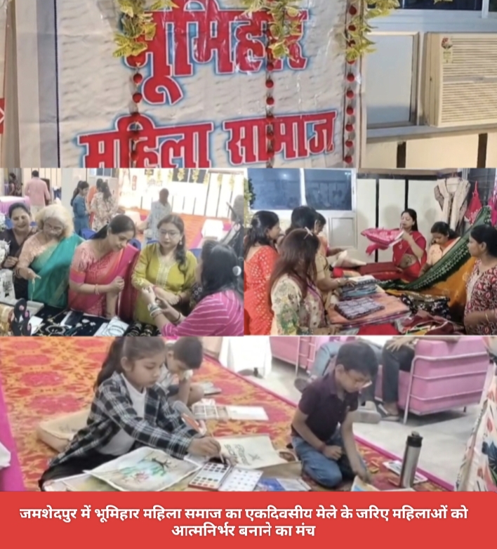 जमशेदपुर : जमशेदपुर के कदमा स्थित ब्रह्मांशी भवन में भूमिहार महिला समाज की ओर से महिलाओं को आत्मनिर्भर बनाने के उद्देश्य से एकदिवसीय मेले का आयोजन किया गया। इस मेले में दर्जनों महिलाओं ने अपने-अपने स्टॉल लगाए, जहां विभिन्न घरेलू उत्पाद, हस्तशिल्प और अन्य सामग्री प्रदर्शित की गई।