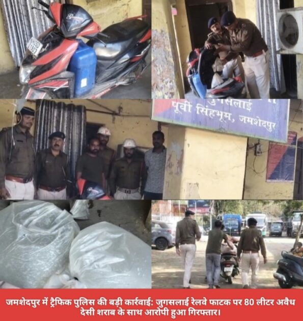 जांच के दौरान चालक से शराब की गंध आने पर तलाशी ली गई. स्कूटी से करीब 70 से 80 लीटर अवैध देसी शराब बरामद हुई. पुलिस ने मुख्य आरोपी बागबेड़ा निवासी रवि कुमार दास को गिरफ्तार कर लिया, जबकि उसका एक साथी फरार हो गया. ट्रैफिक थाना प्रभारी विनय कुमार सिंह ने बताया कि अवैध गतिविधियों पर लगातार नजर रखी जा रही है. जब्त शराब और आरोपी को आगे की कार्रवाई के लिए जुगसलाई थाना को सौंप दिया गया है.