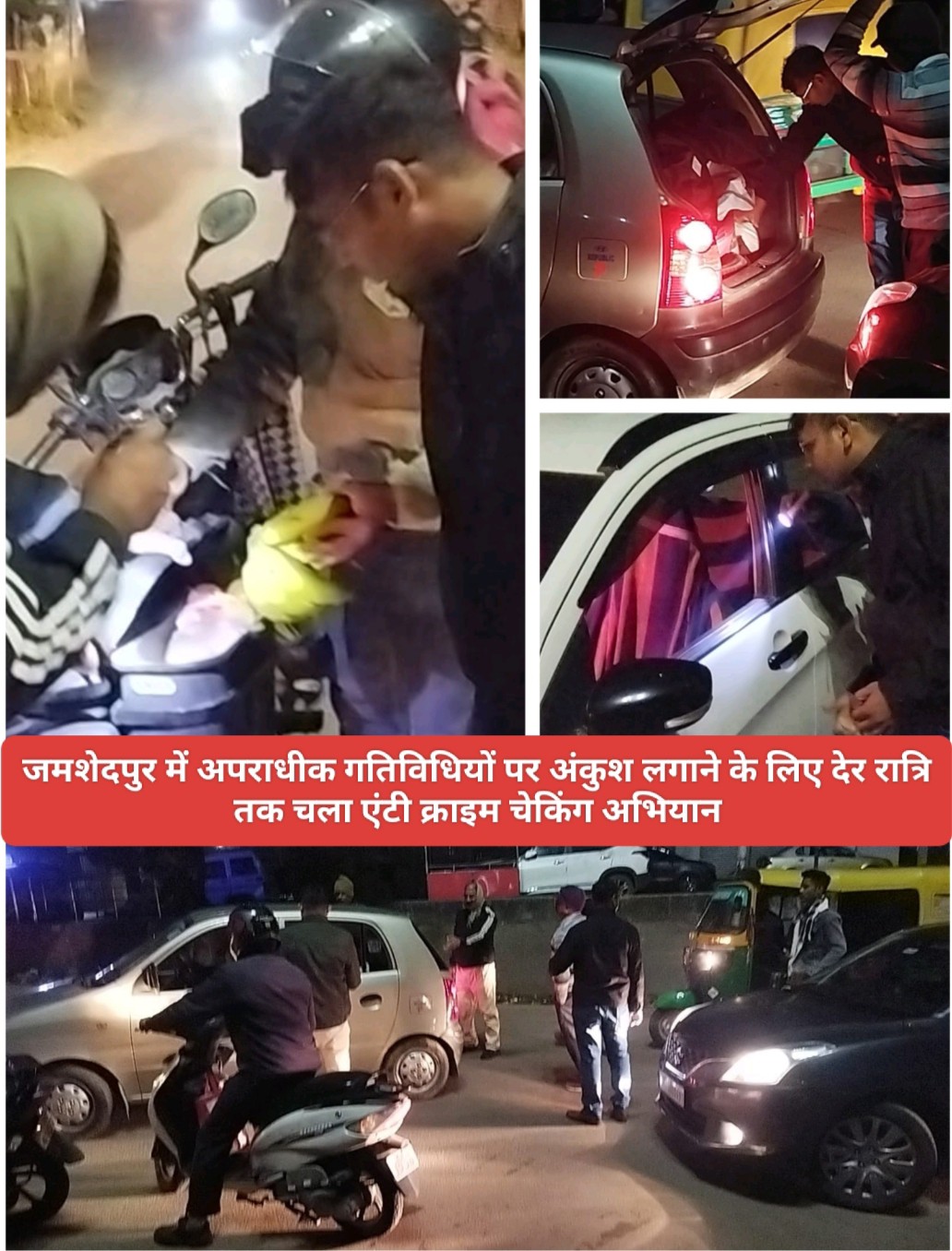 जमशेदपुर : जमशेदपुर के वरीय पुलिस अधीक्षक की दिशा निर्देश पर शहर में अपराधी गतिविधियों पर अंकुश लगाने के लिए पूरे शहर के चौक चौराहा पर एंटी क्राइम चेकिंग अभियान चलाया गया। इस दौरान सभी क्षेत्र के थाना प्रभारी के द्वारा सभी छोटी-बड़ी वाहनों को गहनता से जांच की गई, इस क्रम में वाहनों की डिक्की खोलकर और शारीरिक जांच भी की गई, ताकि किसी भी प्रकार का अपराध संबंधित सामग्री एक क्षेत्र से दूसरे क्षेत्र में ना ले जा सके।