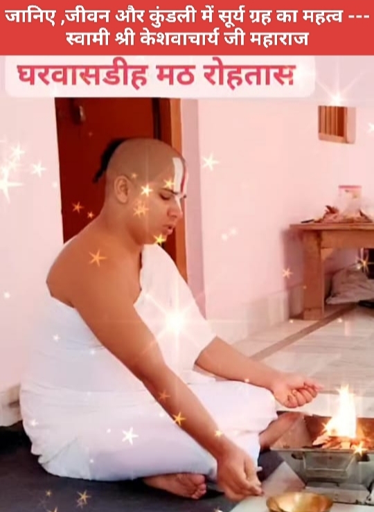 ज्योतिष शास्त्र में, सूर्य को आत्मा, आत्मविश्वास और नेतृत्व का प्रतीक माना जाता है। कुंडली में सूर्य की स्थिति व्यक्ति के व्यक्तित्व, आत्म-सम्मान और नेतृत्व क्षमता को प्रभावित करती है. स्वामी केशवाचार्य जी महाराज ने सफलता और समृद्धि: के उपर प्रकाश डालते हुए स्वामी जी ने कहा कि यदि कुंडली में सूर्य मजबूत स्थिति में है, तो व्यक्ति को जीवन में सफलता, समृद्धि और मान-सम्मान मिलने की संभावना अधिक होती है. यदि कुंडली में सूर्य कमजोर स्थिति में है, तो व्यक्ति को जीवन में चुनौतियों और समस्याओं का सामना करना पड़ सकता है.