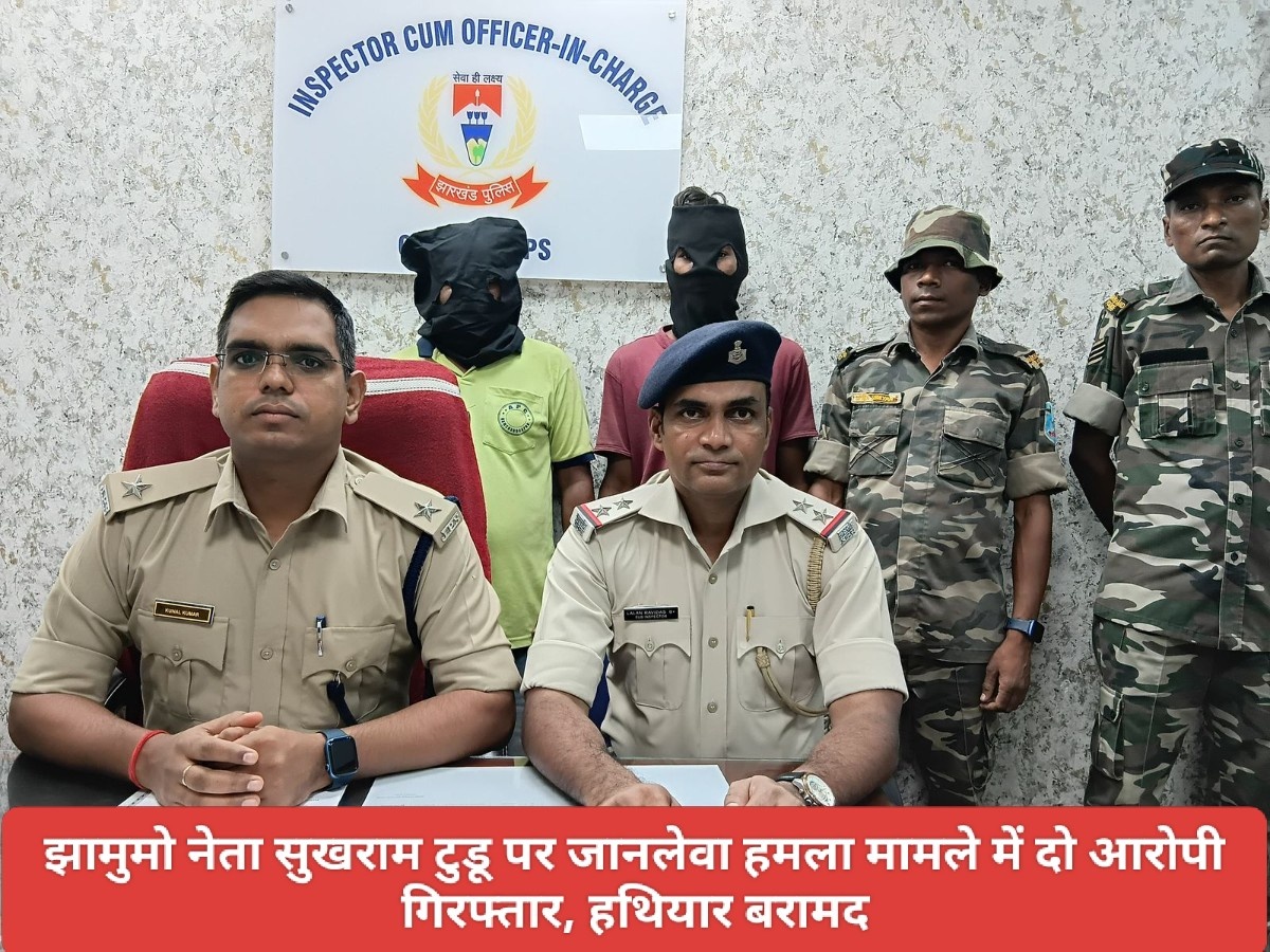 Saraikela (संजीव मेहता) : गम्हारिया पुलिस ने थाना क्षेत्र के रामचंद्रपुर गांव में बीते दिनों झामुमो नेता रामचंद्र टुडू पर जानलेवा हमला करने के मामले में दो आरोपियों को गिरफ्तार कर लिया है. यह कार्रवाई गम्हारिया थाना कांड संख्या 76/25, दिनांक 28 जुलाई 2025 के आधार पर की गई है. इस कांड की वादिनी वांगी टुडु ने अपने पति सुखराम टुडु पर जानलेवा हमले की शिकायत की थी. प्राथमिकी अभियुक्त सुजीत घोष और एक अन्य युवक पर हमला करने का आरोप है. पुलिस ने त्वरित कार्रवाई करते हुए छापामारी टीम का गठन किया. भौतिक, तकनीकी और परिस्थितिजन्य साक्ष्यों के आधार पर दोनों आरोपियों को गिरफ्तार किया है. गिरफ्तार आरोपियों में सुजीत कुमार घोष, उम्र करीब 42 वर्ष और सामु हांसदा, उम्र करीब 19 वर्ष बताई जा रही है.