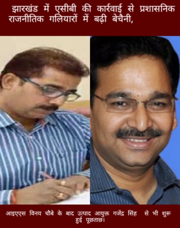 रांची : एसीबी की कार्रवाई से एक बार फिर झारखंड की राजनीतिक गलियारों की तापमान बढ़ने लगी है। वही प्रशासनिक गलियारों में भी बेचैनी बढ़ती जा रही है। लगातार एसीबी की कार्रवाई से झारखंड की राजनीतिक तापमान अब उबलने लगा है। कहा जा रहा है कि कई एसीबी के निशाने पर हैं। आईएएस अधिकारी विनय चौबे से पूछताछ के बाद तुरंत उत्पाद आयुक्त गजेंद्र सिंह से पूछताछ को लेकर कई तरह के चर्चाएं प्रशासनिक एवं राजनीतिक गलियारों में चल रही है।