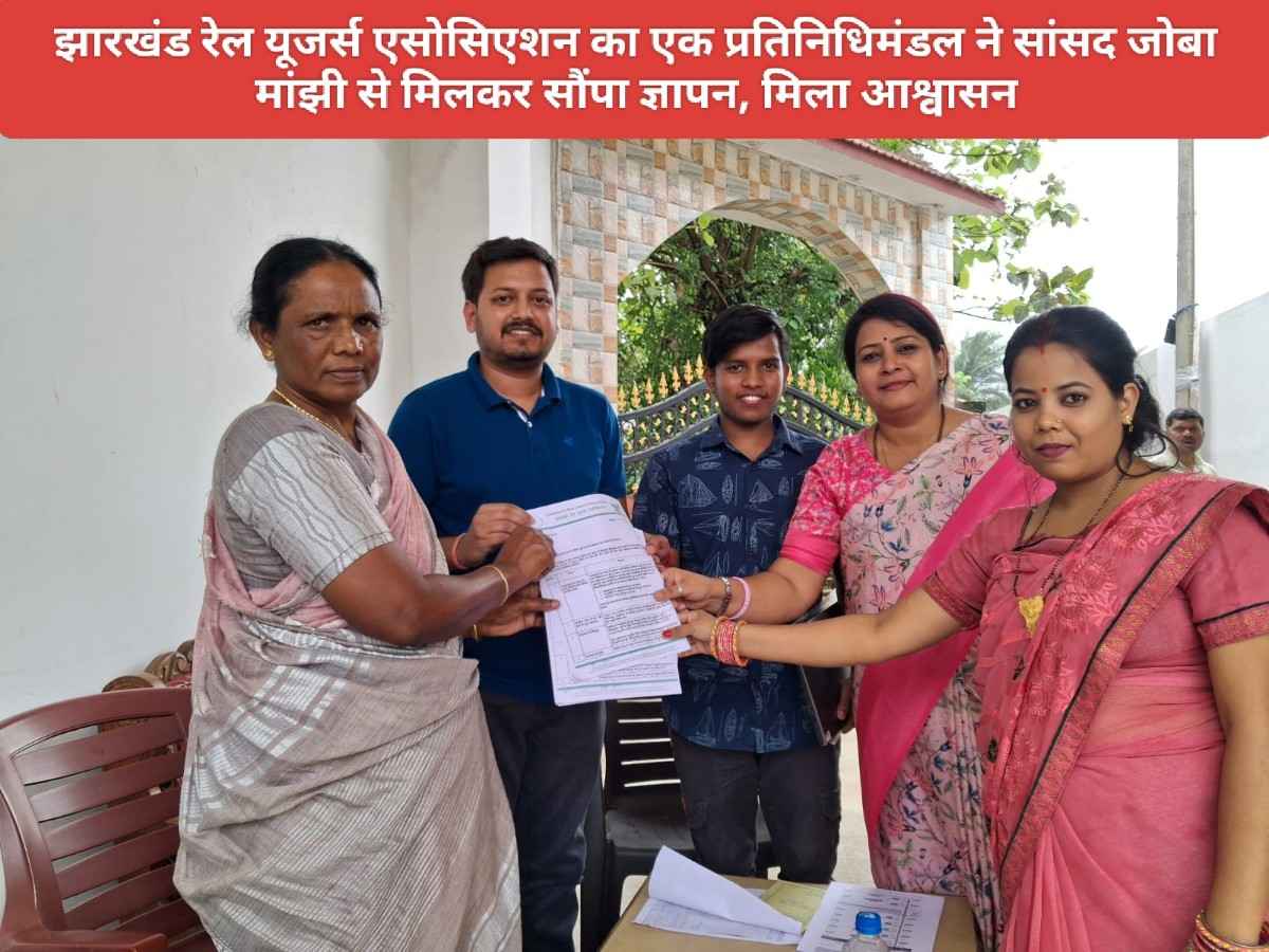 Saraikela (संजीव मेहता) : झारखंड रेल यूजर्स एसोसिएशन का एक प्रतिनिधिमंडल ने सांसद जोबा मांझी (सिंहभूम लोकसभा) से शिष्टाचार भेंट की. इस दौरान चक्रधरपुर रेल मंडल एवं सिंहभूम लोक सभा क्षेत्र की रेल सेवाओं से जुड़ी अनेक समस्याओं व माँगों पर सकारात्मक संवाद हुआ. प्रतिनिधि मंडल द्वारा सांसद की एक ज्ञापन सौंपा गया. जिसमें रेल सेवाओं में सुधार की प्रमुख माँगें शामिल रहीं.