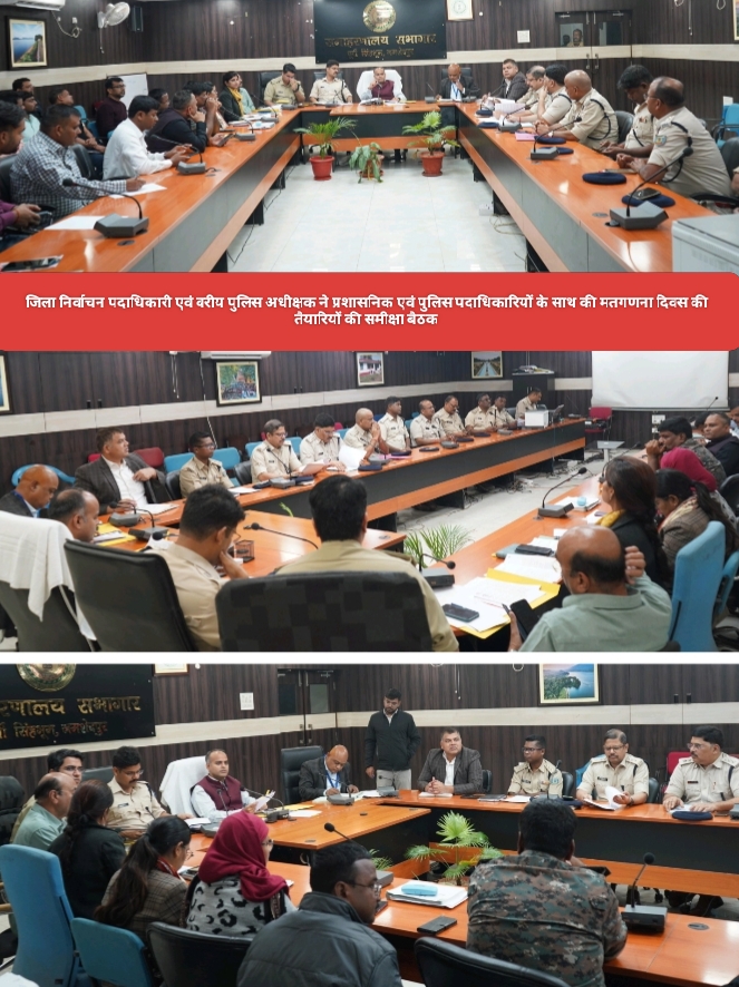 जमशेदपुर: समाहरणालय सभागार,जमशेदपुर में जिला निर्वाचन पदाधिकारी-सह-उपायुक्त कर्ण सत्यार्थी एवं वरीय पुलिस अधीक्षक पीयूष पांडेय द्वारा मतगणना दिवस की तैयारियों को लेकर समीक्षा बैठक की गई। जिला निर्वाचन पदाधिकारी ने मतगणना कार्य में निर्वाचन आयोग के सभी दिशा-निर्देशों के अक्षरशः अनुपालन को सुनिश्चित करने के निर्देश दिए। उन्होंने कहा कि मतगणना कार्य पूर्ण पारदर्शिता एवं निष्पक्षता के साथ संपादित हो, इसके लिए सभी व्यवस्थाएँ सुव्यवस्थित ढंग से सुनिश्चित की जाएं।