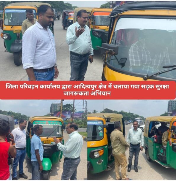 Saraikela (संजीव मेहता) : जिला परिवहन पदाधिकारी, सरायकेला-खरसावाँ गिरजा शंकर महतो की उपस्थिति में आदित्यपुर क्षेत्र अंतर्गत ऑटो क्लस्टर टोल ब्रिज रोड पर विशेष जाँच एवं सड़क सुरक्षा जागरूकता अभियान चलाया गया. इस दौरान विशेष रूप से दो पहिया तथा तिपहिया (ऑटो) चालकों की जाँच की गई, जिसमें चालक अनुज्ञप्ति (ड्राइविंग लाइसेंस), वाहन निबंधन प्रमाणपत्र, बीमा तथा परमिट आदि दस्तावेजों की समीक्षा की गई.