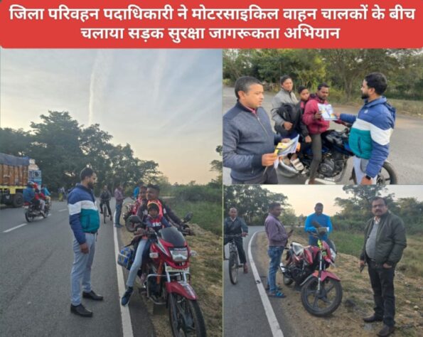 सरायकेला / (संजीव मेहता) : जिला परिवहन पदाधिकारी सरायकेला खरसावां गिरजा शंकर महतो एवं सड़क सुरक्षा सदस्यों के द्वारा सरायकेला राजनगर मार्ग में मोटरसाइकिल वाहन चालकों के बीच जागरूकता अभियान चलाया गया। सड़क सुरक्षा के नियमों का 60 से 70 वाहन चालको को यातायात नियमो के प्रति जागरूक करने को लेकर सड़क-सुरक्षा के टीम के द्वारा रोड सेफ्टी काउंसलिंग किया गया।