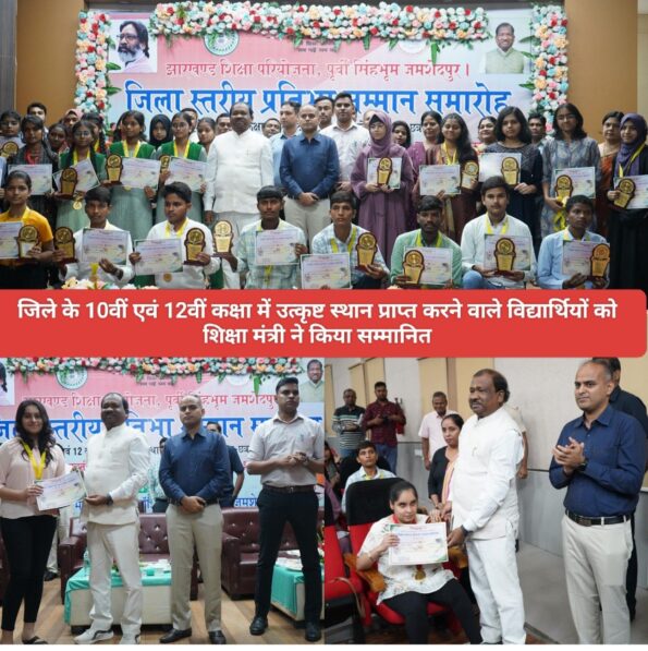 जमशेदपुर: झारखंड शिक्षा परियोजना, जिला स्तरीय प्रतिभा सम्मान समारोह 10वीं एवं 12वीं कक्षा में उत्कृष्ट स्थान प्राप्त करने वाले विद्यार्थियों को जमशेदपुर के माइकल जॉन सभागार में सम्मानित किया गया। इस अवसर पर मुख्य अतिथि शिक्षा मंत्री रामदास सोरेन ने दीप प्रज्वलित कर कार्यक्रम का उद्घाटन किए। इस मौके कर उन्होंने कहा की झारखंड में गठबंधन वाला सरकार है जो राज्य के विकास में लगातार कार्य कर रही है खास कर शिक्षा और स्वास्थ्य को बेहतर करने के प्रति विशेष जोर दे रही है।उन्होंने कहा कि वे काफी खुशी महसूस कर रहे है कि कई छात्र-छात्राओं को वे उनके उत्कृष्ट स्थान प्राप्त करने के लिए सम्मान दिया है।