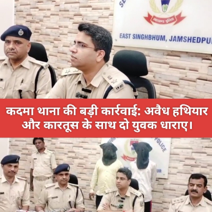 जमशेदपुर : पूर्वी सिंहभूम जिले के कदमा थाना क्षेत्र में पुलिस ने बड़ी सफलता हासिल की है. शुक्रवार को सिटी एसपी कुमार शिवाशीष ने प्रेस कॉन्फ्रेंस कर बताया कि कदमा थाना अंतर्गत शास्त्रीनगर ब्लॉक नंबर 4, खरकई नदी किनारे दो युवकों को हथियार के साथ गिरफ्तार किया गया है. मिली सूचना के आधार पर पुलिस ने वरीय अधिकारियों के निर्देश पर छापामारी दल का गठन किया.