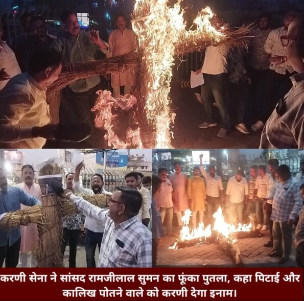 जमशेदपुर : बीते दिन भारतीय संसद में समाजवादी पार्टी के सांसद रामजीलाल सुमन द्वारा देश के वीर महाराणा प्रताप सिंह के प्रति अमर्यादित भाषा का प्रयोग किए जाने से पूरे भारत में इसका विरोध किया जा रहा है, इसी कड़ी में जमशेदपुर के साकची गोलचक्कर में करणी सेना की ओर से सांसद रामजीलाल सुमन का पुतला दहन किया गया ।