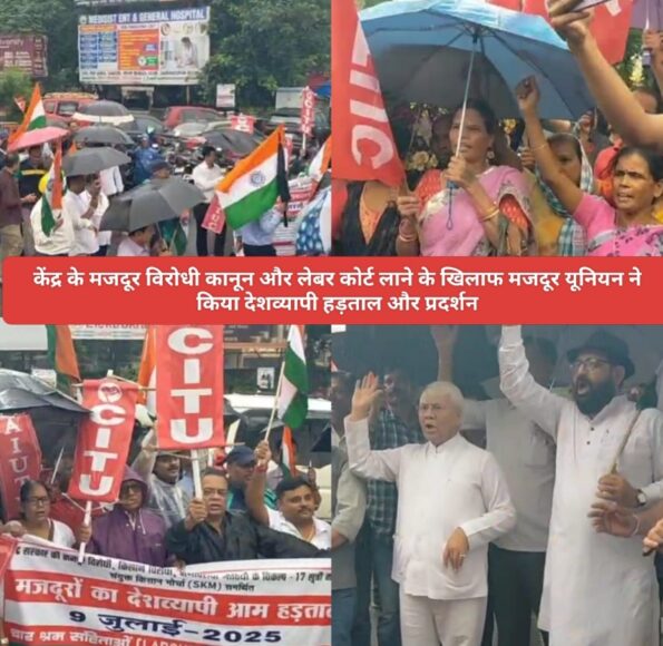 जमशेदपुर : जमशेदपुर पूर्व घोषित आहूत के तहत केंद्र सरकार के मजदूर विरोधी नीति के खिलाफ केंद्रीय ट्रेड यूनियन और स्वतंत्र फेडरेशन के संयुक्त तत्वाधान देशव्यापी हड़ताल और प्रदर्शन किया।इसी क्रम में जमशेदपुर में भी बरसात के बावजूद ट्रेड यूनियन के बैनर तले मजदूरों ने जिला मुख्यालय में प्रदर्शन किए।मजदूर विरोधी नीति के खिलाफ इन मजदूरों का सरकार के खिलाफ ऐसा आक्रोश था कि तेज बारिश में भी डेट रहे और केंद्र सरकार के खिलाफ जमकर नारे बाजी की।