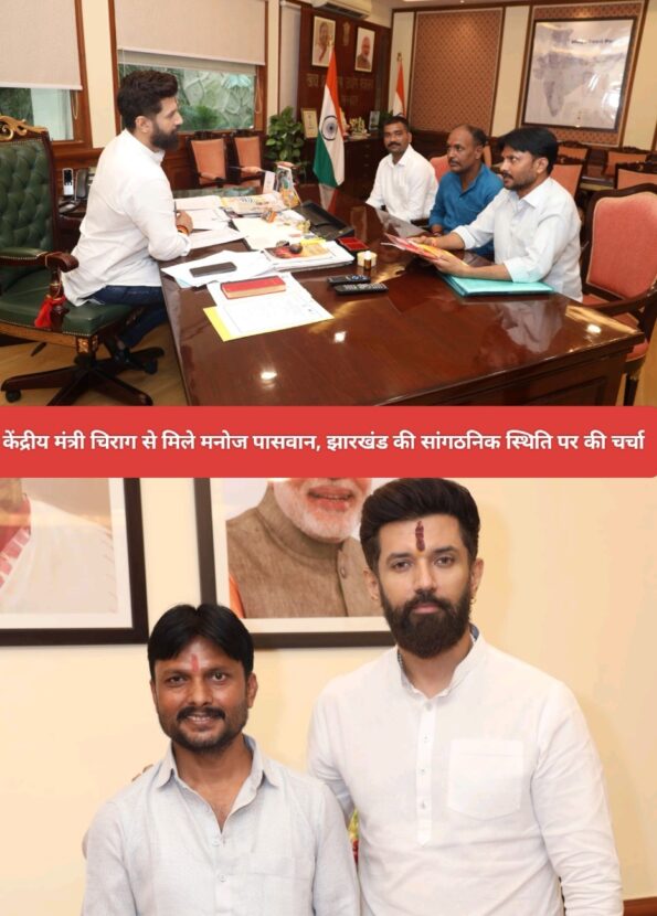 Saraikela (संजीव मेहता) : केंद्रीय मंत्री चिराग से 28 जुलाई को नई दिल्ली स्थित पंचशील भवन में खाद्य प्रसंस्करण उद्योग मंत्रालय में लोजपा रामविलास के राष्ट्रीय अध्यक्ष सह केंद्रीय मंत्री भारत सरकार चिराग पासवान से शिष्टाचार मुलाकात की. इस दौरान मनोज पासवान ने पार्टी के विभिन्न विषयों पर चर्चा की. जिसमें खासतौर पर झारखंड में पार्टी की सांगठनिक स्थिति और पार्टी की मजबूती पर चर्चा की. जिसे मंत्री चिराग पासवान ने सम्मान पूर्वक बातों को सुना और हमेशा मिलते रहने का निर्देश दिए. बता दें कि स्वर्गीय राम विलास पासवान से मनोज पासवान के दादा स्वर्गीय राम विनय पासवान जो दलित सेना के संस्थापक थे का बहुत ही नजदीकी नाता रहा है.