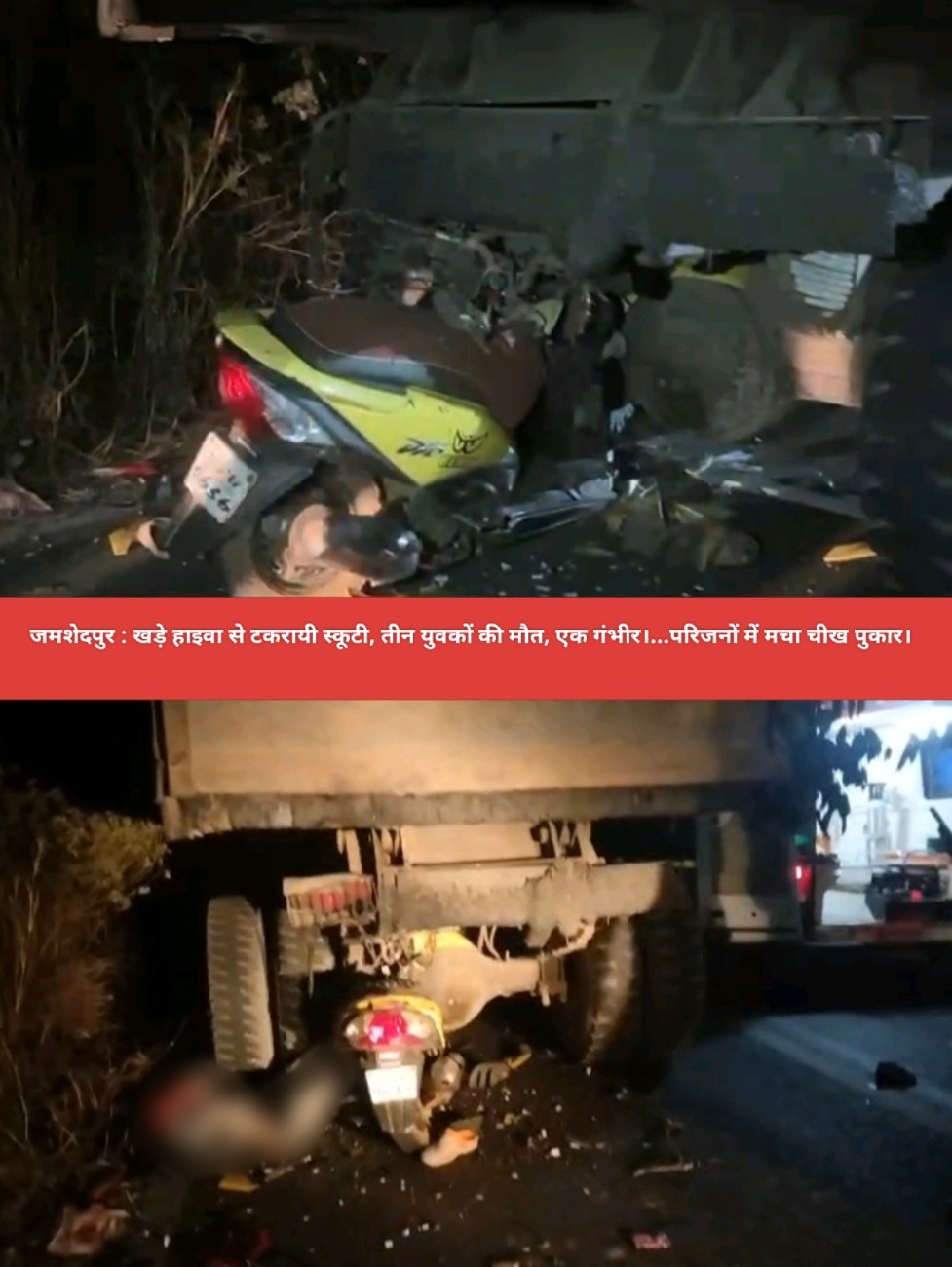 जमशेदपुर : मुसाबनी-हाता मुख्य मार्ग पर सुरदा यूनियन बैंक शाखा के पास शुक्रवार की शाम खड़े हाइवा में स्कूटी टकराने से तीन युवकों की दर्दनाक मौत हो गयी. वहीं, एक युवक घायल हो गया. मृतकों में गालूडीह के जगन्नाथपुर स्थित बांधडीह टोला निवासी सगे भाई रोहित कर्मकार और समीर कर्मकार तथा राजू गोप शामिल हैं।