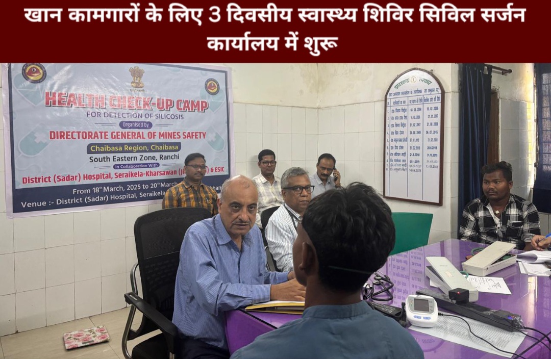 Saraikela (संजीव मेहता) : सरायकेला-खरसावां के खान कामगारों के लिए 3 दिवसीय स्वास्थ्य शिविर सिविल सर्जन कार्यालय में मंगलवार से शुरू हुआ है जो 20 मार्च तक चलेगा. बता दें कि जिले में असंगठित क्षेत्र की छोटी पत्थर एवं अन्य खदानों में काम करने वाले कामगार सिलिकोसिस एवं अन्य व्यवसायिक रोगों से प्रभावित हैं. इन कामगारों के लिए स्वास्थ्य परीक्षण शिविर का आयोजन सिविल सर्जन कार्यालय परिसर में 18 मार्च—20 मार्च को किया जा रहा है.