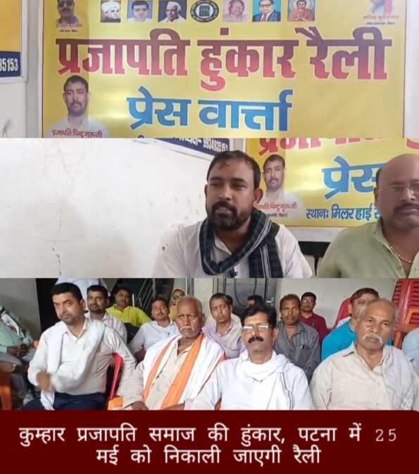 रोहतास : रोहतास जिले के सासाराम में कुम्हार प्रजापति समन्वय समिति के बैनर तले एक अहम बैठक आयोजित की गई। बैठक के बाद आयोजित प्रेस वार्ता में समिति के नेताओं ने जानकारी दी कि आगामी 25 मई को राजधानी पटना में एक भव्य “हुंकार रैली” निकाली जाएगी।