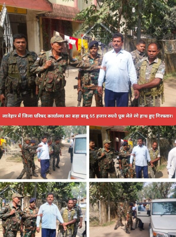 रांची : लातेहार जिले में भ्रष्टाचार निरोधक ब्यूरो (एसीबी) की टीम ने जिला परिषद कार्यालय में हड़कंप मचा दिया। एसीबी पलामू की टीम ने एक सुनियोजित कार्रवाई में जिला परिषद के प्रधान लिपिक (बड़ा बाबू) संतोष सिंह को 65,000 रुपये की रिश्वत लेते हुए रंगे हाथ दबोच लिया।