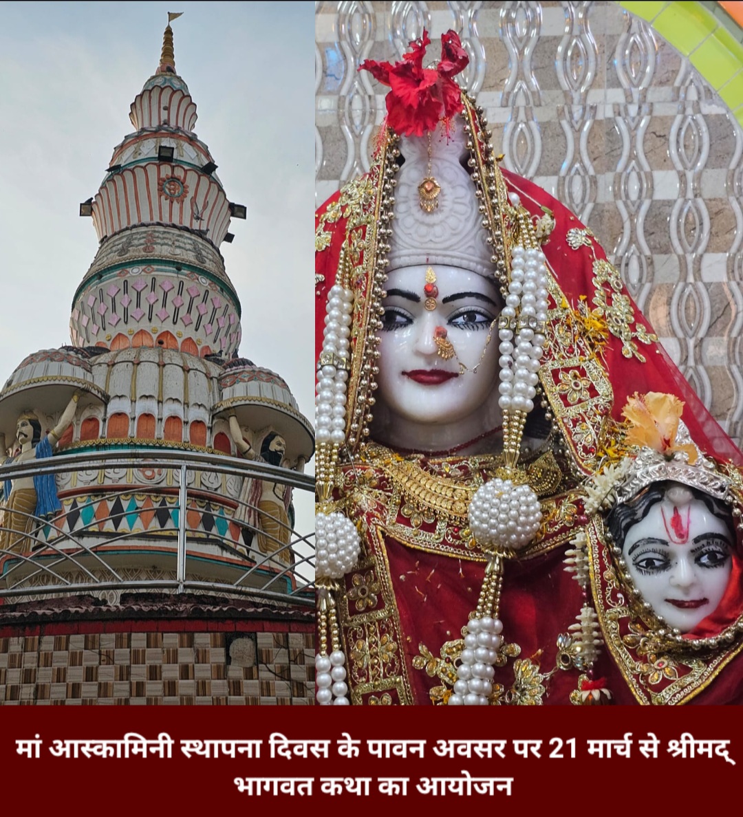 बिक्रमगंज (रोहतास) : बिक्रमगंज शहर के विख्यात एवं मनोकामना पूर्ण मंदिर मां आस्कामिनी मंदिर के प्रांगण में प्रत्येक वर्ष की भांति इस वर्ष भी मां आस्कामिनी स्थापना दिवस के पावन अवसर पर 21 मार्च से श्रीमद् भागवत कथा का आयोजन किया जा रहा है । जो 28 मार्च को पूजन,हवन एवं विशाल भंडारा के साथ श्रीमद् भागवत कथा का आयोजन संपन्न होगा । इसकी जानकारी देते हुए मां आस्कामिनी मंदिर के अध्यक्ष सह महंथ गया प्रसाद सिंह ने बताया कि मां के प्रांगण में 21 मार्च से राष्ट्रीय कथा वाचक श्री ब्रजकिशोर चंद्र शास्त्री जी के द्वारा श्रीमद् भागवत कथा का रसपान कराया जाएगा ।
