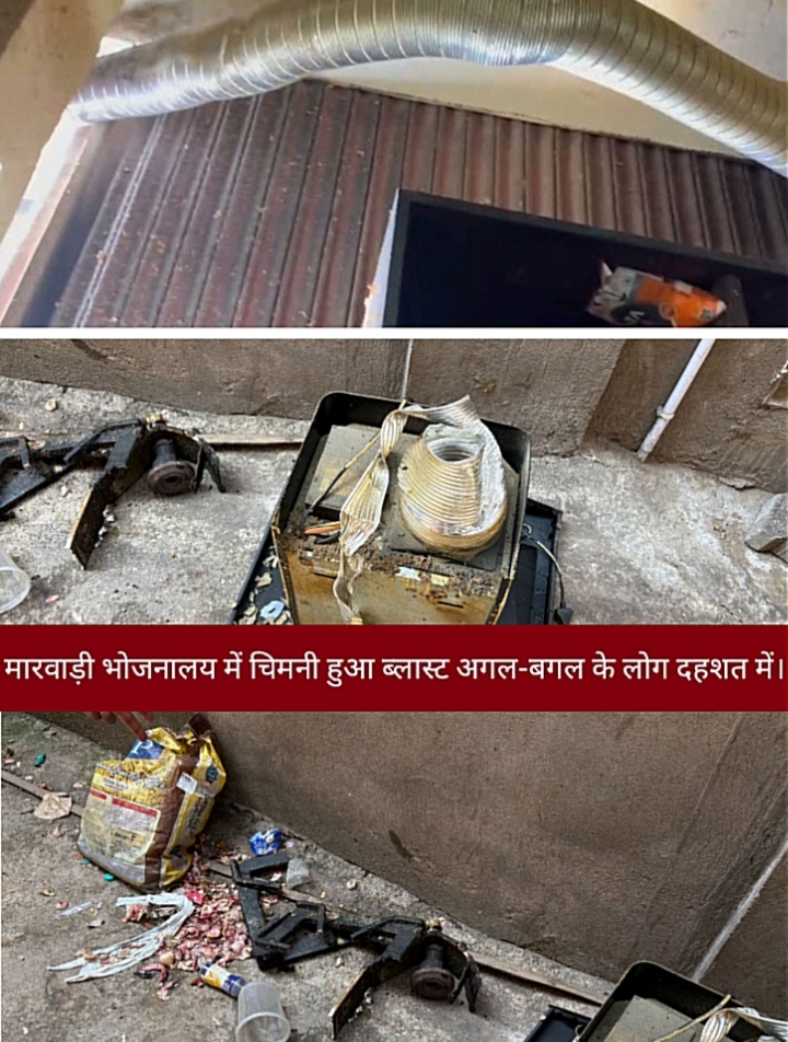 सरायकेला : सरायकेला खरसावां जिले के आदित्यपुर थाना क्षेत्र अंतर्गत एचआईजी, मारवाड़ी भोजनालय प्रभात पार्क के बगल में अचानक खाना बनाते समय चिमनी ब्लास्ट कर गया। जिससे जोर का धमाका हुआ और अगल-बगल के लोग दहशत में हो गए और जब घर के बाहर अगल-बगल के लोगों ने निकल कर देखा, तो देखा कि मारवाड़ी भोजनालय के चिमनी ब्लास्ट हो गया है। जिससे जोर का धमाका हुआ और चिमनी टूट कर इधर-उधर बिखरा पड़ा है टूट कर।