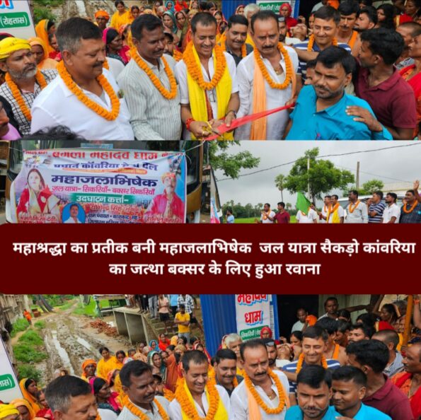 उद्घाटन के बाद भावी प्रत्याशी योगेंद्र सिंह ने कांवरियों के जत्थे को हरी झंडी दिखाकर रवाना किया । मौके पर स्थानीय मुखिया समेत कई जनप्रतिनिधि तथा सैकड़ों शिवभक्त मौजूद रहे । प्रधान कांवरियां सेवा दल के अनुसार इस महाजलाभिषेक जलयात्रा में करीब छह बसों से सवार होकर शिवभक्त मां गंगा का पवित्र जल लेने बक्सर पहुंचे । सावन माह के अंतिम सोमवारी के पावन अवसर पर ये सभी कांवरियां अहले सुबह बक्सर से जल लेकर सिकरिया बंगला महादेव धाम पर बाबा भोलेनाथ का जलाभिषेक करेंगे । जत्थे के प्रस्थान के दौरान कांवरियों के चेहरों पर उत्साह चरम पर था और ‘हर-हर महादेव’ के जयघोष से पूरा वातावरण भक्तिमय हो उठा । श्रद्धा,उमंग और भक्ति की यह अद्भुत तस्वीर प्रखंड क्षेत्र में लंबे समय तक स्मरणीय रहेगी ।