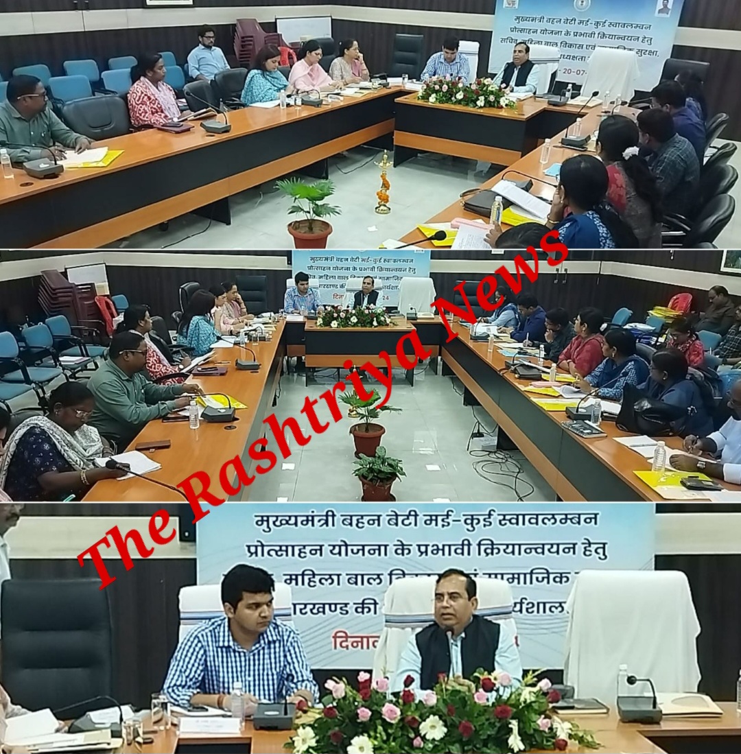 जमशेदपुर : महिला बाल विकास एवं सामाजिक सुरक्षा विभाग झारखंड के सचिव मनोज कुमार जमशेदपुर के समाहरलाय में एक बैठक की जिसमें झारखंड सरकार द्वारा एक नई योजना लागू करने जा रही है।जिसको लेकर सचिन ने डीडीसी सहित विभाग के अधिकारियों एवं पदाधिकारी के साथ बैठक कर योजना के बारे में जानकारी दी। इसके तहत 21 से 50 वर्ष की महिलाओं को दी जाने वाली राशि को लेकर किस तरह कंप्यूटर सहित अन्य कार्य विधि को संचालित की जाए।