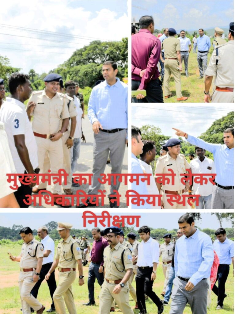 कार्यक्रम के सफल आयोजन को लेकर आज प्रमंडलीय आयुक्त, कोल्हान श्री हरि कुमार केसरी, DIG कोल्हान श्री मनोज रतन चौथे के द्वारा उपायुक्त सरायकेला-खरसावां श्री रवि शंकर शुक्ला, उपायुक्त पश्चिमी सिंहभूम श्री कुलदीप चौधरी, उप विकास आयुक्त पूर्वी सिंहभूम श्री मनीष कुमार एवं वरीय पुलिस अधीक्षक पश्चिमी सिंहभूम, पुलिस अधीक्षक सरायकेला खरसावां श्री मुकेश कु. लूणायत के समेत अन्य वरीय पदाधिकारियों के साथ कार्यक्रम स्थल का निरीक्षण कर तैयारियों का जायजा लिया गया। मौके पर कार्यक्रम स्थल की साफ सफाई, अस्थाई हेलीपैड, वाहन पार्किंग तथा यातायात परिचालन, कार्यक्रम स्थल तक आवागमन की अलग-अलग व्यवस्था आदि के सम्बन्ध में बिंदुवार चर्चा कर आवश्यक दिशा निर्देश दिए। इस दौरान प्रमण्डलीय आयुक्त कोल्हान श्री हरि कुमार केशरी नें कहा कि कार्यक्रम को लेकर सभी संबंधित पदाधिकारी अपने स्तर से तैयारी पूर्ण कर लें। निरीक्षण के दौरान विधि व्यवस्था सुनिश्चित करने, सम्मानित जनप्रतिनिधियों व लाभुकों के बैठने की व्यवस्था, पेयजलापूर्ति, चलन्त शौचालय, मेडिकल टीम, अग्निशमन दल तथा एंबुलेंस की उपलब्धता, आवश्यक जगहों पर बैरिकेडिंग, आवश्यक सिनेज के साथ-साथ अन्य व्यवस्थाओं को जल्द दुरुस्त करने की बात कही।