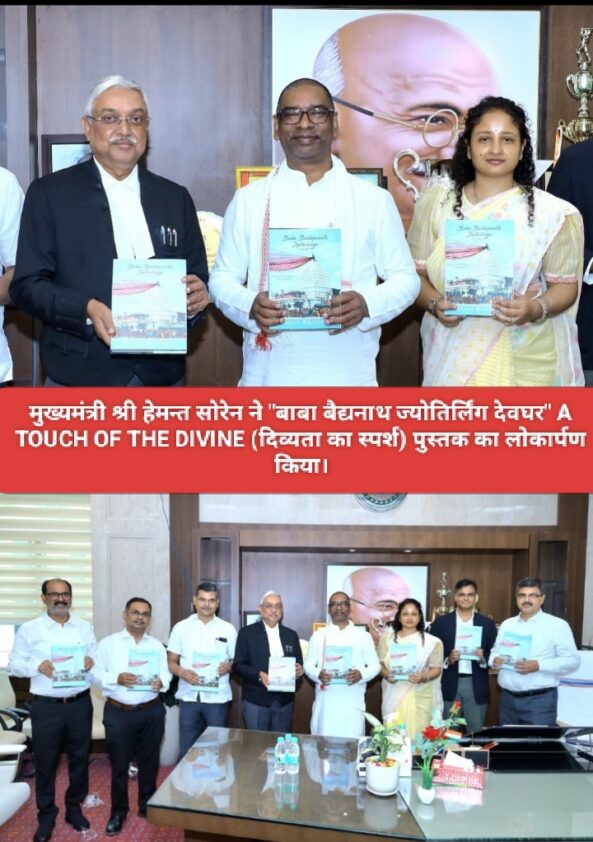 रांची : मुख्यमंत्री श्री हेमन्त सोरेन एवं विधायक श्रीमती कल्पना सोरेन ने आज झारखंड विधान सभा में महाधिवक्ता श्री राजीव रंजन द्वारा लिखित पुस्तक “बाबा बैद्यनाथ ज्योतिर्लिंग देवघर” A TOUCH OF THE DIVINE (दिव्यता का स्पर्श) पुस्तक का विधिवत लोकार्पण किया। मौके पर मुख्यमंत्री श्री हेमन्त सोरेन ने महाधिवक्ता श्री राजीव रंजन को अपनी ओर से हार्दिक बधाई एवं शुभकामनाएं दी।