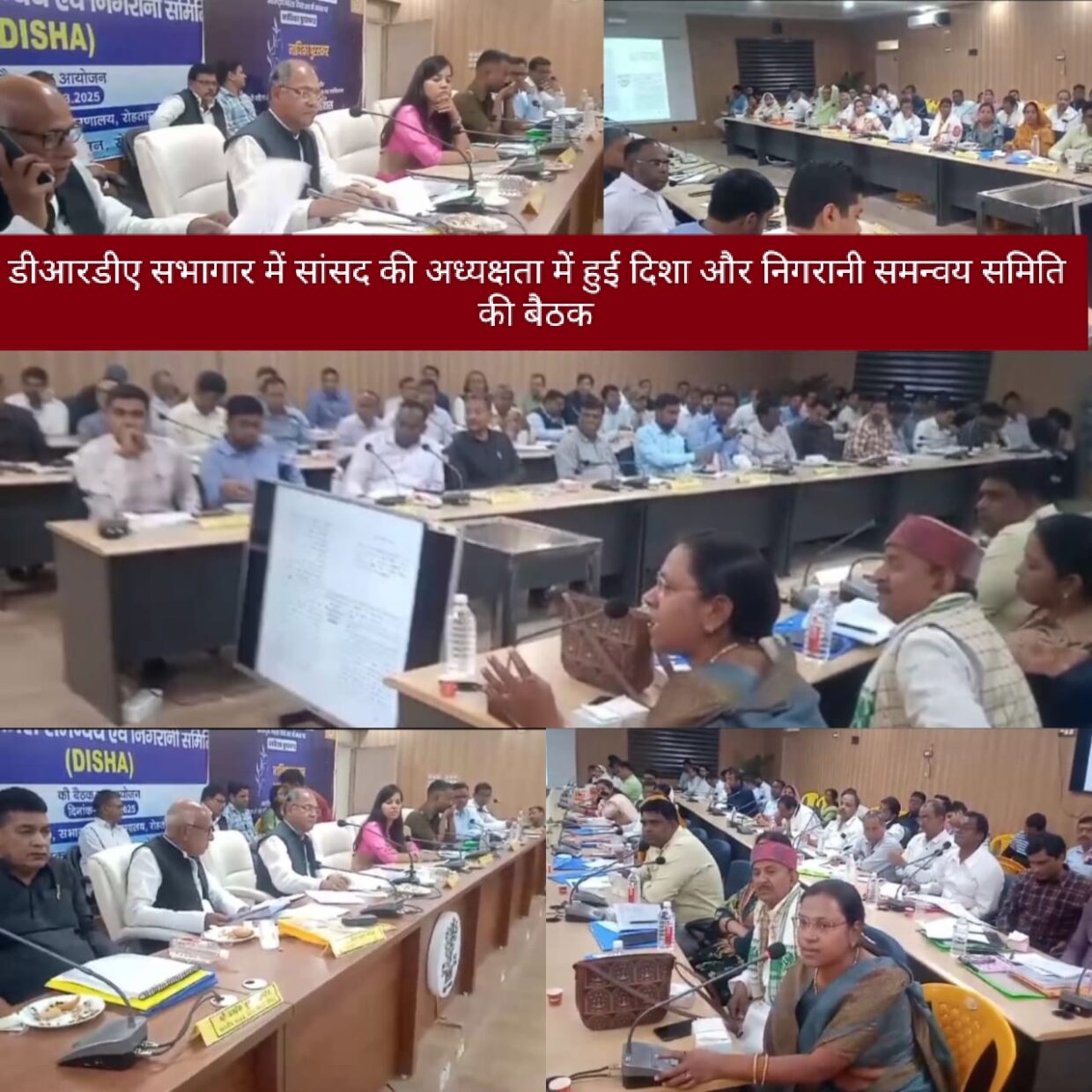 रोहतास सासाराम : रोहतास जिले के सासाराम के डी०आर०डी०ए० सभागार, में काराकाट सांसद सह- अध्यक्ष, जिला विकास समन्वय एवं निगरानी समिति (दिशा) की महत्वपूर्ण बैठक राजा राम सिंह की अध्यक्षता में आहुत की गई। उक्त बैठक में दिनारा विधायक विजय कुमार मंडल, विधान परिषद् सदस्य श्री अशोक कुमार पाण्डेय, अन्य माननीय विधायक/ विधान परिषद् सदस्य के प्रतिनिधिगण, विभिन्न प्रखण्डों के माननीय प्रमुख, नगर निकाय के मुख्य पार्षद, अन्य जनप्रतिनिधिगण उपस्थित हुये। जिला पदाधिकारी, रोहतास, पुलिस अधीक्षक, रोहतास उप विकास आयुक्त रोहतास, अपर समाहर्ता, रोहतास सहित सभी जिला स्तरीय/विभाग के पदाधिकारीगण की उपस्थिति में जिला विकास समन्वय एवं निगरानी समिति (दिशा) की बैठक में पूर्व की बैठक में माननीय जनप्रतिनिधि के द्वारा उठाये गए विषय / समस्या की समीक्षा की गई। साथ जिला स्तरीय विभिन्न विभागों के द्वारा क्रियान्वित कार्यकलापों के बारे में अध्यक्ष महोदय को अवगत कराया गया। उक्त बैठक में कई जनप्रतिनिधियों द्वारा अपने क्षेत्र से संबंधित कई बिषय प्रस्तुत किय गये जो मुख्यतः जल संसाधन विभाग, पथ निर्माण विभाग, सिंचाई विभाग, प्रखण्ड/अंचल/नगर निकाय इत्यादि से संबंधित थे। जिसका जिला स्तर से निष्पादन करने का आश्वासन जिला प्रशासन द्वारा समिति को दिया गया है।