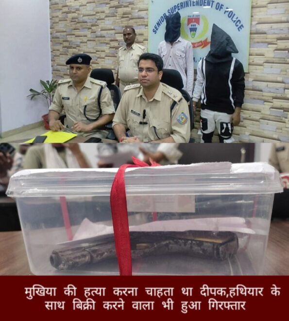 जमशेदपुर : जमशेदपुर पुलिस ने मुखिया की हत्या की तैयारी में जुटे दो आरोपियों को गिरफ्तार करने में सफलता पाई है। इसे लेकर प्रेस कॉन्फ्रेंस कर सिटी एसपी कुमार शिवाशीष ने जानकारी दी कि, बीते दिन गुप्त सूचना मिली कि हलुदबनी कोचकुली के रहने वाले दीपक कुमार लोहार उर्फ भगना ने अपने घर में किसी घटना को अंजाम देने के लिए पिस्टल रखी हुई है।