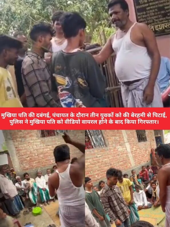 कटिहार जिले के आजमनगर थाना क्षेत्र अंतर्गत दनिहा पंचायत के मुखिया रूबी खातून के पति सिकंदर भाट की दबंगई का वीडियो सोशल मीडिया पर तेजी से वायरल हो रहा है। वायरल वीडियो में मुखिया पति सिकंदर भाट ख्वाजा नगर गांव स्थित एक मस्जिद में चोरी की घटना को लेकर पंचायती के दौरान दो लड़कों को बांस की छड़ी से जोर-जोर से पीटते नजर आ रहे हैं। वीडियो में साफ दिख रहा है कि दोनों युवक को पंचायती में खड़े कर दिया और सिकंदर भाट उन पर छड़ी बरसा रहे हैं। चोट से लड़का चिल्ला रहा हे आसपास कई लोग पंचायती में बैठे हुए भी दिखाई दे रहे हैं।