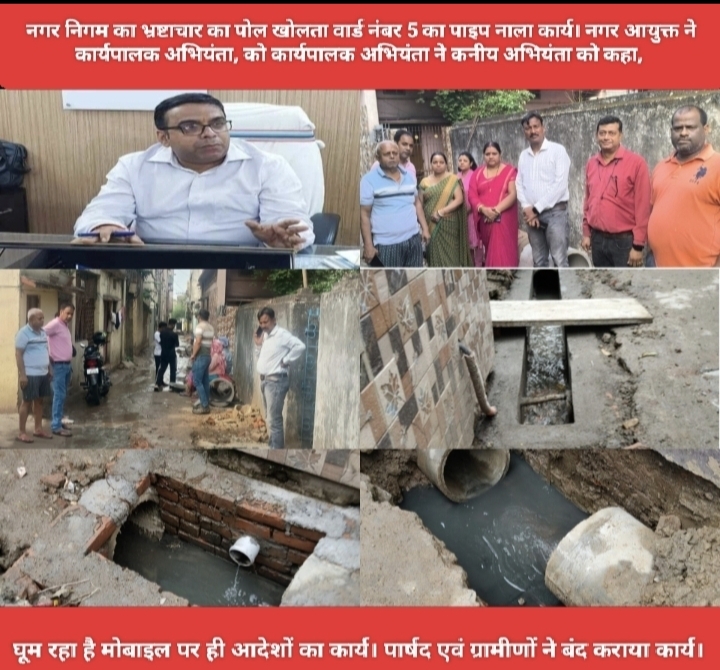 इस तरह की कार्यप्रणाली भ्रष्टाचार को बढ़ावा दे रही है।क्योंकि एक बार भी इतने शिकायतों के बावजूद भी कार्यपालक अभियंता स्थल पर नहीं पहुंचे और ना ही इस मामले को कोई गंभीरता से ले रहा है। जिससे पांच वार्ड के आदर्श नगर के ग्रामीणों में नगर निगम के प्रति आक्रोश बढ़ते भ्रष्टाचार को देखते हुए बढ़ता जा रहा है। क्योंकि कार्य एस्टीमेट के अनुसार नहीं हो रहे हैं। इस पूरे मामले पर जानकारी के लिए नगर निगम के सचिव झारखंड रांची से संपर्क करने का प्रयास किया गया। परंतु समाचार लिखे जाने तक संपर्क नहीं हो पाया। बताया जा रहा हैँ, की गायत्री इंटरप्राइजेज द्वारा कार्य कराया जा रहा हैँ।