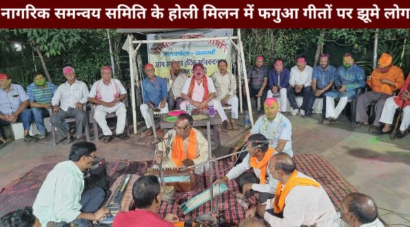 Saraikela (संजीव मेहता) : नागरिक समन्वय समिति जिला सरायकेला-खरसावाँ के होली मिलन समारोह में फगुआ के पारंपरिक गीतों पर लोग जमकर झूमे. यह आयोजन समिति के केंद्रीय अध्यक्ष प्रसिद्ध नारायण सिंह के नेतृत्व में रोड नंबर 10 आदित्यपुर-1 में संपन्न हुआ. कार्यक्रम में सभी सदस्यों ने एक दूसरे को गुलाल लगाकर होली की बधाई दी. मौके पर मौजूद स्थानीय शिव शक्ति रामायण मंडली के सदस्यों ने फागुन के गीतों से लोगों को झूमने पर मजबूर कर दिया. आज के होली मिलन कार्यक्रम में बड़ी संख्या में महिला एवं पुरुष शामिल हुए.