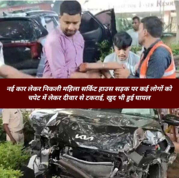 जिससे घटना स्थल पर अफरातफरी मच गई,और राहगीरों ने कार में फंसे घायल महिला को बाहर निकाला,जिसके बाद सूचना पर पहुंची पुलिस की सहायता से घायल महिला को अस्पताल पहुंचाया गया।प्रत्यक्ष दर्शियों के अनुसार इस घटना में कुछ और लोग भी घायल हुए है जिन्हें तत्काल इलाज के लिए स्थानीय अस्पताल ले जाया गया।वही पुलिस ने कार को जब्त कर पूरे घटना क्रम की जांच में जुट गई है।