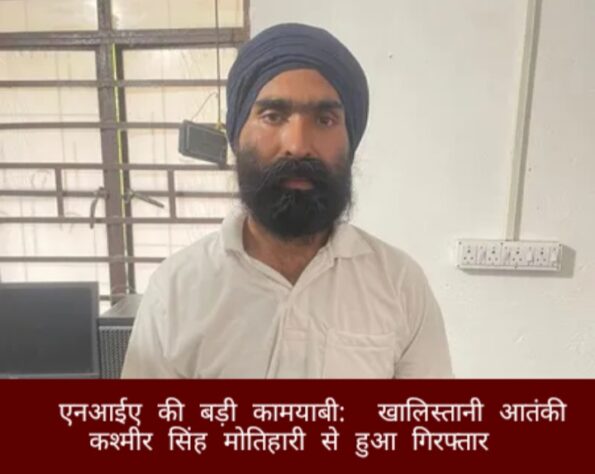 दिल्ली ( प्रतीक सिंह ) : राष्ट्रीय जांच एजेंसी (एनआईए) ने रविवार को एक बड़े खालिस्तानी नेटवर्क से जुड़े आतंकी को बिहार के मोतिहारी से धर दबोचा। गिरफ्तार किए गए व्यक्ति की पहचान लुधियाना निवासी कश्मीर सिंह गलवाड्डी के रूप में हुई है। यह गिरफ्तारी एनआईए और राज्य पुलिस के संयुक्त अभियान के तहत हुई।