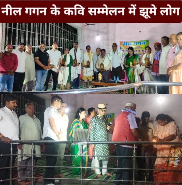 Saraikela (संजीव मेहता) : साहित्यिक संस्था नील गगन का होली मिलन सह कवि सम्मेलन आदित्यपुर -2रोड न. 13/14 राम मंदिर प्रांगण मे पूर्ण उत्साह के साथ सम्पन्न हुआ. जिसमें शहर के लब्ध प्रतिष्ठित कवि, कवियित्री शामिल हुए. जिसमें कविवर श्यामल सुमन, मामचंद अग्रवाल बसंत जमशेदपुरी, श्रीमती उपसणा सिन्हा, सोनी सुगंधा, शैलेन्द्र पाण्डेय शैल, सुशील साहिल, कुमार अविनाश, सूरज सिंह राजपूत, भोगेन्द्र नाथ झा खोँचर, राजीव कुमार, निलांबर चौधरी सहित अन्य कवि शामिल रहे. सबों ने अपने कविता पाठ से उपस्थित श्रोताओं को भाव बिभोर किया.