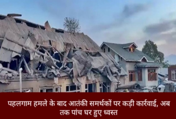 श्रीनगर : जम्मू-कश्मीर प्रशासन ने हालिया पहलगाम आतंकी घटना के बाद कड़ा रुख अपनाते हुए दक्षिण कश्मीर के तीन जिलों – पुलवामा, शोपियां और कुलगाम – में लश्कर-ए-तैयबा के तीन संदिग्ध मददगारों के आवास नष्ट कर दिए। इस ताजा कदम के साथ पिछले एक दिन में तोड़े गए घरों की संख्या पाँच हो चुकी है। पुलवामा के अहसान शेख, शोपियां के शाहिद कुट्टे और कुलगाम के जाहिद अहमद के मकानों को गिराया गया।