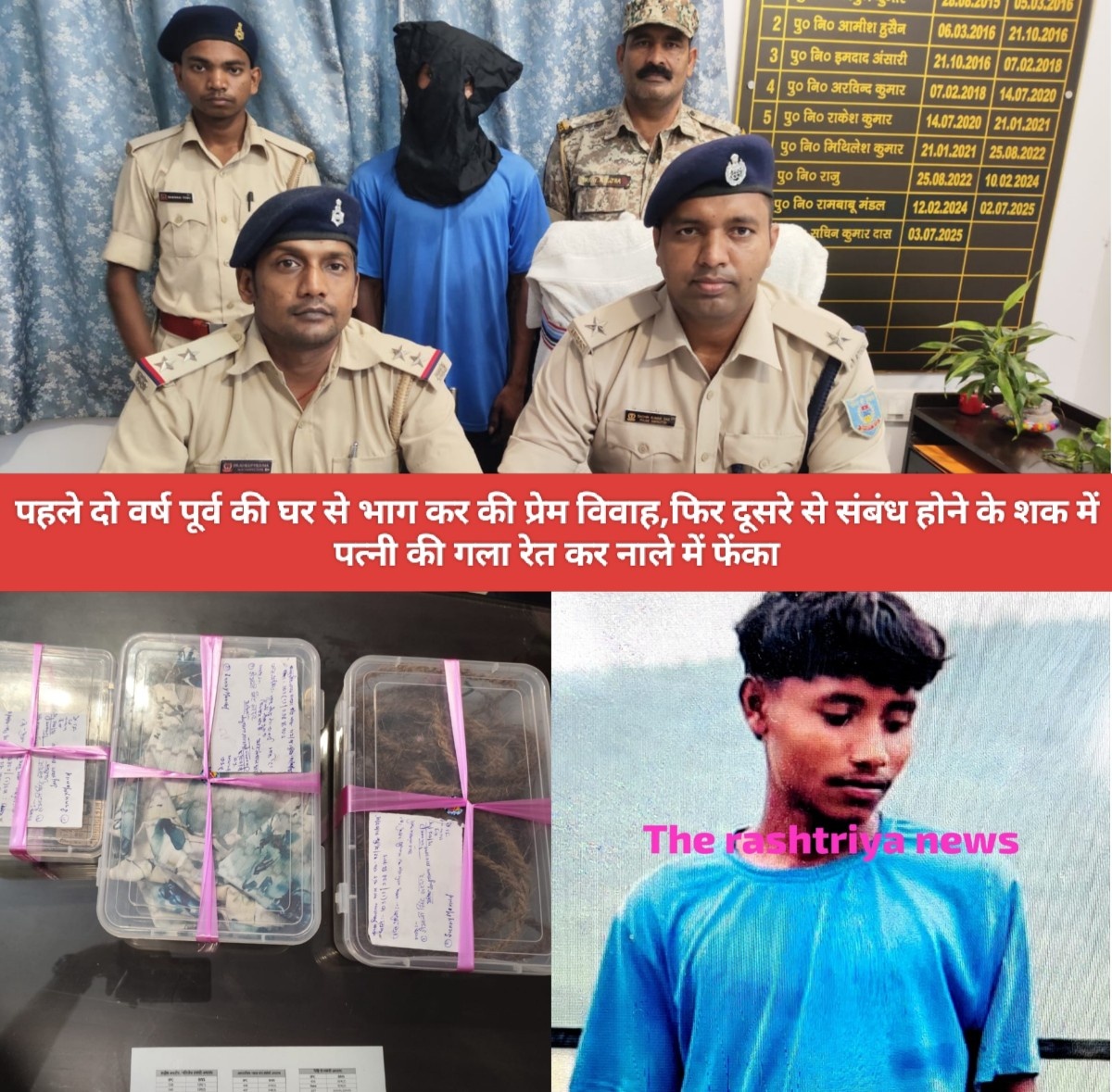 जिससे पूछताछ में उसने पूरे घटना क्रम की जानकारी देते हुए अपराध स्वीकार कर ली है। वही उसके निशानदेही पर हत्या में प्रयुक्त किए गए दावली,रस्सी और कपड़े बरामद कर ली है। वही आवश्यक कार्यवाई के बाद आरोपी को न्यायिक हिरासत में भेज दिया गया।