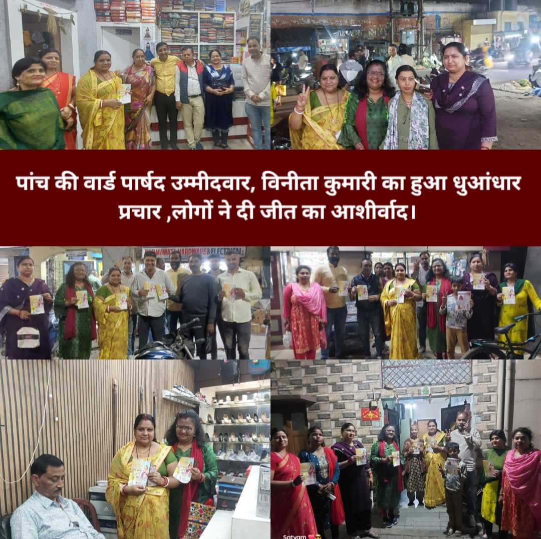 उन्होंने बताया कि उन्हें चुनाव चिन्ह बल्ला छाप मिला है जिसपर 23 फरवरी को मोहर मारकर हमें पार्षद बनाएं, अगले 5 वर्षों तक वार्ड की हर समस्या के लिए वो तत्पर रहेंगी. एक तरफ जहां उनके समर्थकों द्वारा भारी मतों से जीताने के लिए संपर्क अभियान चलाया जा रहा है ।वहीं पांच नंबर वार्ड की क्षेत्र की महिलाओं द्वारा भी जनसंपर्क अभियान चलाते हुए लोगों से जीताने की अपील कर रही हैं ।