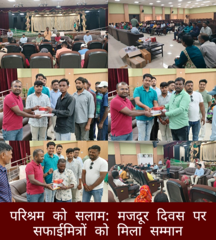 इस क्रम में आज 1 मई, 2025 मजदूर दिवस को श्री शशि शेखर सुमन, प्रशासक, नगर पंचायत, सरायकेला के निदेशानुसार टाउन हॉल, वार्ड सं0-11, सरायकेला में सफाईमित्रों को सम्मानित करने के लिए कार्यक्रम किया गया। मौके पर उपस्थित श्री महेश जारिका, नगर प्रबंधक, श्री सुमित सुमन, नगर प्रबंधक, श्री संदीप कुमार, कनीय अभियंता, श्री मानस पट्टनायक, निम्नवर्गीय लिपिक, श्री प्रहलाद कुमार साहू, सहायक, श्री श्यामसुन्दर कामिला, सहायक, श्री धीरेन्द्र सतपथी, अनुसेवी, श्री रोहित कुमार साहु, कम्प्युटर ऑपरेटर, श्री लालू प्रसाद महतो, कम्प्युटर ऑपरेटर, श्री बजरंग महान्ती, पी०आई०यू०, श्री जितु खालखो, पी०आई०यू, श्री समीर कुमार रजक, सफाई सुपरवाईजर, श्री बबन कुमार, सफाई सुपरवाईजर, श्री चन्दन मुखी, MSW, सुपरवाईजर, सभी सफाईमित्रों नगर पंचायत, सरायकेला के मौजूद थे।
