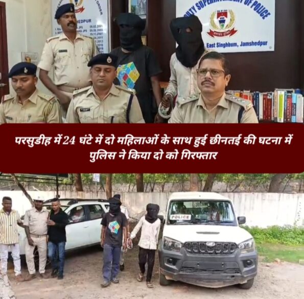 जमशेदपुर : जमशेदपुर के परसुडीह थाना क्षेत्र में बीते दिनों हुई दो महिलाओं के साथ छीनतई की घटना में शामिल दो अपराधियों को पुलिस ने गिरफ्तार करने में सफलता पाई है।डीएसपी लॉ एंड ऑर्डर तौकीर आलम ने प्रेस कॉन्फ्रेंस कर पत्रकारों को जानकारी दी कि पांच और 6 जून को मोटर साइकिल सवार दो बदमाशों ने राह चलती दो महिलाओं से झपटमारकर पर्स की छीनतई कर ली थी।
