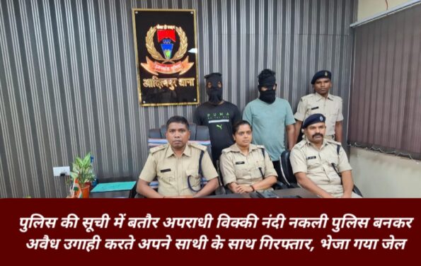 सरायकेला (संजीव मेहता) : पुलिस की सूची में बतौर अपराधी विक्की नंदी नकली पुलिस बनकर अवैध उगाही करते अपने साथी के साथ विक्की नंदी अपने साथी के साथ हुआ गिरफ्तार, पूछताछ के बाद पुलिस ने भेजा जेल. बता दें कि बीते दिनों आदित्यपुर थाना अंतर्गत ऑटो क्लस्टर के समीप ट्रैफिक पोस्ट के पास बिना नंबर प्लेट के बोलेरो वाहन लगाकर जिसका शीशा पर काला फिल्म लगा हुआ है एवं डैशबोर्ड के सामने पुलिस बोर्ड लगाकर पुलिस की नकली गाड़ी में नकली पुलिस बनकर भय दिखाते हुए आने जाने वाहनों से अवैध वसूली की सूचना मिल रही थी.