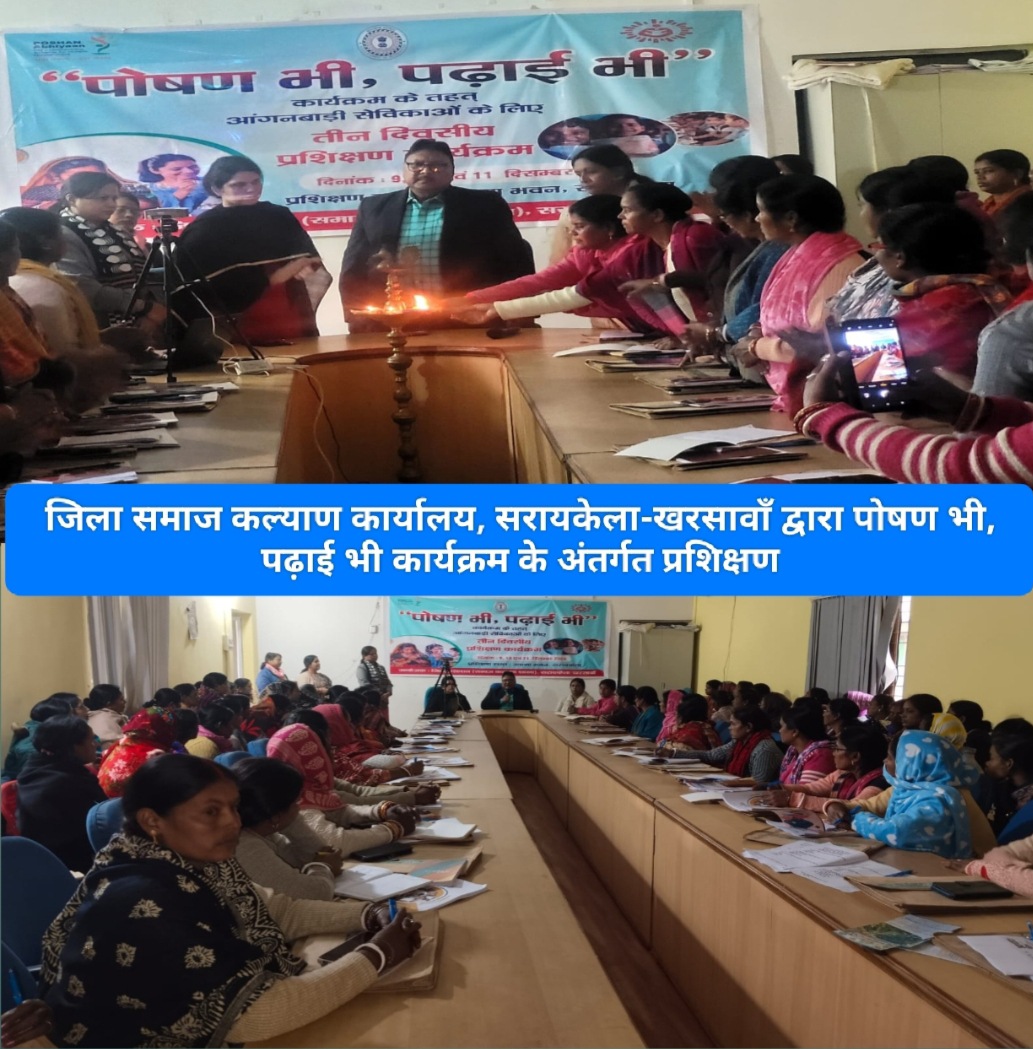 सरायकेला / (संजीव मेहता) : जिला समाज कल्याण विभाग सरायकेला खरसावां द्वारा सोमवार को पोषण भी पढ़ाई भी कार्यक्रम के तहत जिला समाज कल्याण पदाधिकारी, सरायकेला-खरसावां की अध्यक्षता में आंगनबाड़ी सेविकाओं का प्रथम बैच का जिला स्तरीय प्रशिक्षण कार्यक्रम शुरू हुआ. इस कार्यकम में मुख्य अतिथि के रूप में उप विकास आयुक्त ने ‘दीप प्रज्जवलित कर प्रशिक्षण कार्यक्रम का शुभारंम किया. इस प्रशिक्षण कार्यक्रम को पांच बैच में सम्पन्न किया जाना है, जो दिनांक-09.12.2024 से प्रारंम होकर 28.12.2024 तक निर्धारित है. देश भर में पोषण और प्रारंभिक बचपन की शिक्षा में सुधार के उहेश्य से पोषण भी पढ़ाई भी अभियान की शुरूआत की गई है. इस तीन दिवसीय प्रशिक्षण कार्यक्रम में 0-3 वर्ष के बच्चों के लिए नवचेतना एवं 3-6 वर्ष के बच्चों के लिए आधारशिला के अन्तर्गत प्रारंभिक बचपन की देखभाल, शिक्षा, पोषण, बच्चों के विकास के सभी आयामों पोषण ट्रैकर ऐप, SAM/ MAM बच्चे, MCP कार्ड, दिव्यांग बच्चों के लिए प्रोटोकॉल, स्थानीय चीजों का प्रयोग कर ऑगनबाडी केन्द्रों को लर्निंग सेन्टर के ‘तौर पर विकसित करना है की जानकारी दी जाएगी. जैसे कागज, कपडे एवं मिट्टी के खिलौने का प्रयोग कर गतिविधि आधारित शिक्षा एवं सही पोषण के बारे में भी जानकारी दी जानी है. आज सभी सेविकाओं को प्रशिक्षण किट एवं स्टेशनरी प्रदान की गई. जिसमें नवचेतना, आधारशिला एवं बुकलेट को भी शामिल किया गया।
