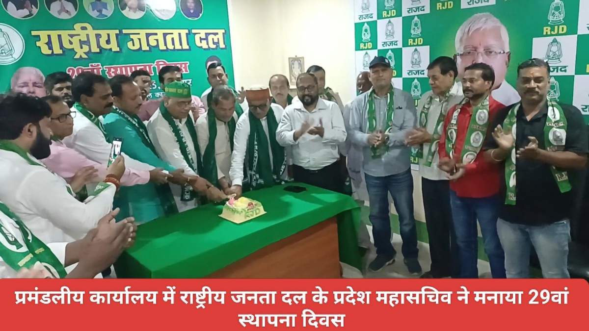 Saraikela (संजीव मेहता) : राष्ट्रीय जनता दल के 29वें स्थापना दिवस के अवसर पर प्रमंडल कार्यालय आदित्यपुर में प्रदेश महासचिव वीरेंद्र यादव ने हर्षोल्लास एवं गरिमा के साथ मनाया स्थापना दिवस. इस अवसर पर भारी संख्या में पार्टी कार्यकर्ताओं, समर्थकों एवं पदाधिकारियों ने भाग लिया. पार्टी की नीतियों और सिद्धांतों को पुनः दोहराते हुए जनाधार को सुदृढ़ करने का संकल्प लिया. कार्यक्रम की शुरुआत केक काटकर की गई. सभा की अध्यक्षता जनार्दन कुमार, अध्यक्ष – बुद्धिजीवी प्रकोष्ठ ने की तथा संचालन बीरेंद्र कुमार सिंह यादव महासचिव ने किया.