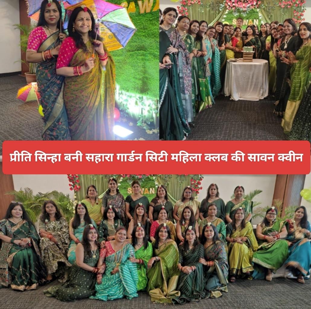 सहारा गार्डन सिटी रेजिडेंस की महिला क्लब की सदस्यों ने एक भव्य और सांस्कृतिक रंगों से सराबोर नृत्य और गीतों की प्रस्तुति के साथ उल्लास एंव उत्सवपूर्ण माहौल में धूमधाम से सावन महोत्सव का आयोजन किया. इस कार्यक्रम ने न केवल महिलाओं को एक मंच प्रदान किया, बल्कि पारंपरिक भारतीय लोकसंस्कृति और त्योहारों की समृद्ध विरासत को भी जीवंत कर दिया. सर्वप्रथम होटल की महिला स्टाफ द्वारा महिला क्लब की सभी सदस्यों को पारंपरिक ढंग से कुमकुम तिलक एवं पुष्प गुच्छ से स्वागत किया गया. कार्यक्रम में महिलाओं ने मेहंदी रची हाथों से ढोल की थाप पर जमकर नृत्य किया एवं सावन के गीत के साथ कई लोकगीत भी गाए और मनोरंजक कार्यक्रम आयोजित किया. इस मौके पर पारंपरिक परिधान पहनकर और सोलह शृंगार में सजी –धजी महिला सखियों ने शिव-पार्वती वंदना से कार्यक्रम की शुरुआत की एवं अपनी प्रतिभा का प्रदर्शन किया. महिलाएं पारंपरिक हरे परिधान, चूड़ियाँ, बिंदी, गजरे और श्रृंगार से सजधजकर आईं, जिससे पूरा माहौल हरियाली और उत्सव से सराबोर हो गया. महोत्सव में क्लब की महिलाओं ने विभिन्न पारंपरिक और लोक सांस्कृतिक प्रस्तुतियों से समां बांध दिया.