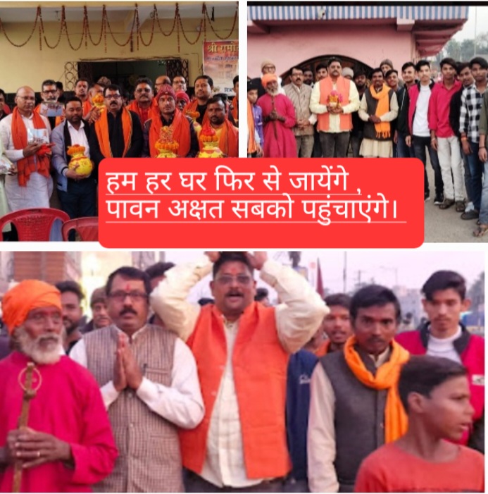 सरायकेला : सरायकेला खरसावां जिले में आज दिनांक 15-12-2023 शुक्रवार को विश्व हिंदू परिषद के जिला अध्यक्ष राजू चौधरी के नेतृत्व में पुर्वान्ह 11:00 बजे गम्हारिया लाल बिल्डिंग स्थित शिव पार्वती मंदिर मे अयोध्या से आये पवित्र मंत्रोअक्षत कलश की पूजा अर्चना व परिक्रमा की गई । तत्पश्चात सभी 09 प्रखंड एवं 2 नगर से आये विहिप,सघं एवं बीजेपी के सदस्यों को अक्षत कलश के साथ पत्रक एवं राम मंदिर की चित्र सौंपा गया। सभी 09 प्रखंड एवं 2 नगर के प्रमुख मंदिरों मे अक्षत कलश की भव्य स्वागत व पूजा अर्चना करने की दायित्व सभी प्रमुख एवं सह प्रमुख को दिये गये। सभी प्रखंड एवं नगर के प्रमुख और सह प्रमुख सुची निम्न प्रकार जारी किए गए हैं ।