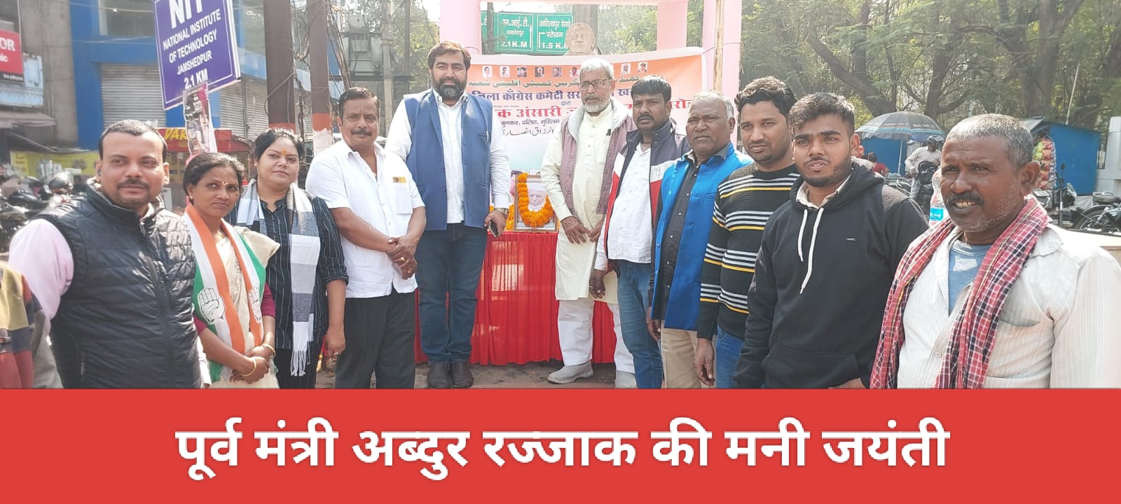 Saraikela (संजीव मेहता) : आकाशवाणी चौक पर आज कांग्रेस नेता मुबारक मोमिन अंसारी के नेतृत्व में बिहार सरकार के पूर्व मंत्री अब्दुर रज्जाक अंसारी(पूर्व मंत्री बिहार सरकार) सह स्वतंत्रता सेनानी की जयंती की जयंती मनाई गया. इस मौके जिला कांग्रेस के वरीय उपाध्यक्ष जमील असरफ बब्बन ने उनके त्याग और बलिदान की चर्चा की.